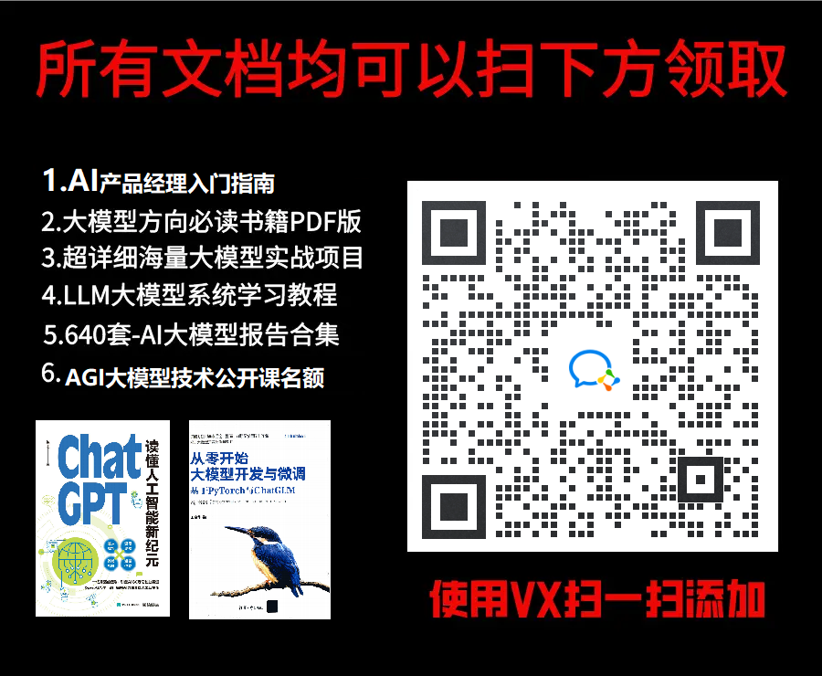 🔥AGI大模型在行业大火,AI产品经理到底要学哪些内容,和算法工程师有哪些区别,转行AI产品经理要学哪些东西,作为一名热心肠的互联网老兵,我决定把宝贵的AI知识分享给大家。 至于能学习到多少就看你的学习毅力和能力了 。我已将重要的AI大模型资料包括AI大模型入门学习思维导图、精品AI大模型学习书籍手册、视频教程、实战学习等录播视频免费分享出来。