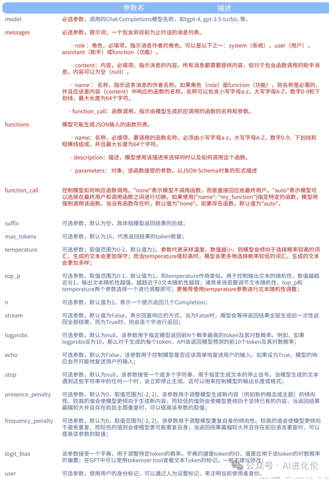 ChatCompletion.create函数各参数说明