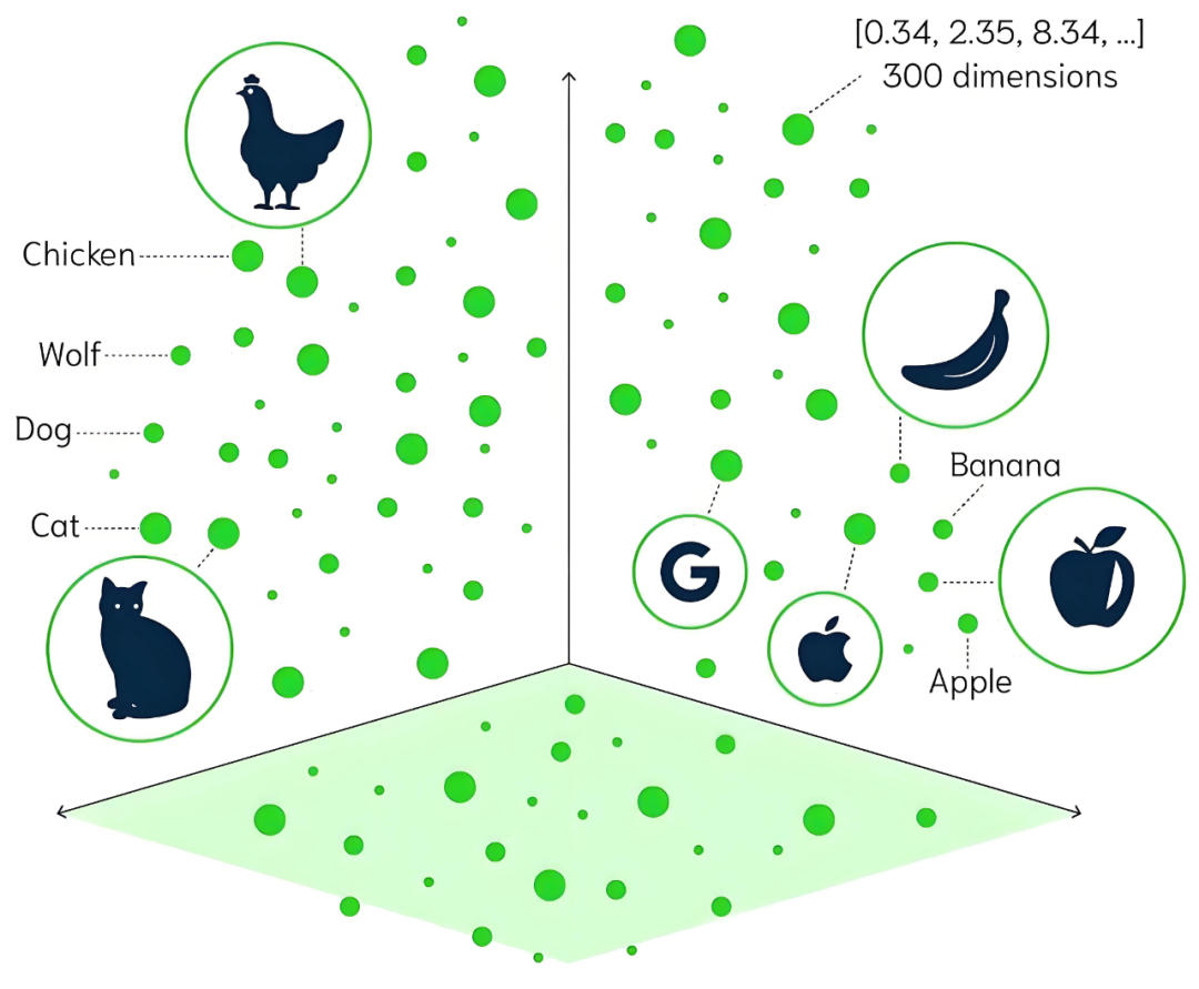 嵌入模型是将文本、图像、音频等非结构化数据转化为计算机可理解的"数值向量"的工具。向量的"距离"反映数据的语义相似度,这是大模型理解语言的核心能力。例如,"猫"和"狗"的向量距离会比"猫"和"汽车"更近。