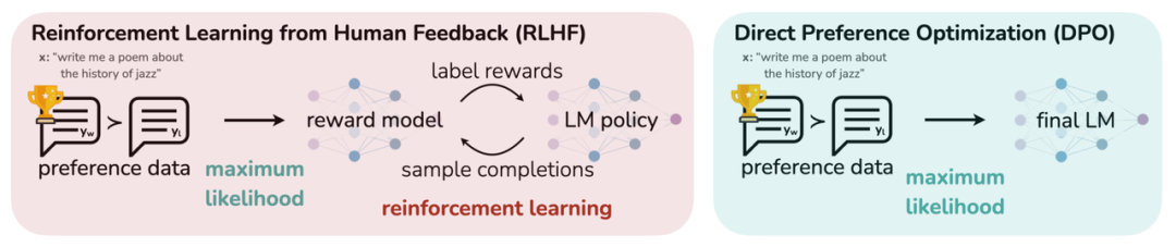 对齐的挑战与替代方案:RLHF过程复杂且高度依赖昂贵的人类标注数据 。因此,研究人员也在探索更高效的替代方案,如直接偏好优化(Direct Preference Optimization, DPO),它通过一种更直接的方式利用偏好数据来调整模型,过程更稳定且计算成本更低。