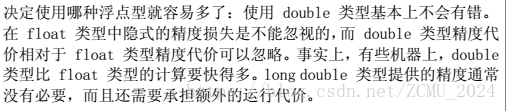 对于实际程序来说,float 类型精度通常是不够的-float型只能保证6位有效数字,而double型至少可以保证10位有效数字,能满足大多运算需求。