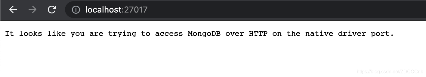 不放心的小伙伴可以打开浏览器,地址栏输入localhost:27017 或者 127.0.0.1:27017。此时我们的页面就变成了这样,表示未连接服务器