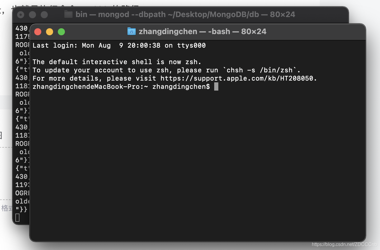 运行命令:./mongod --dbpath db文件加的路径,找不到路径的朋友可以直接将db文件夹拖进终端