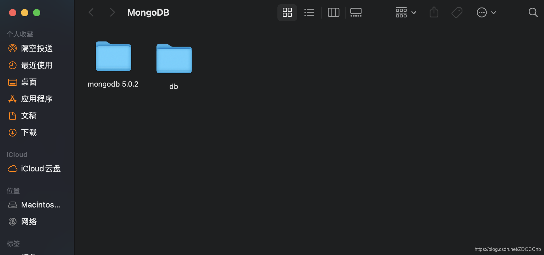 此时,我们在桌面创建一个新的文件夹叫做:MongoDB,将上面的tgz文件解压过后放进MongoDB文件夹,并且创建一个新的文件夹:db;