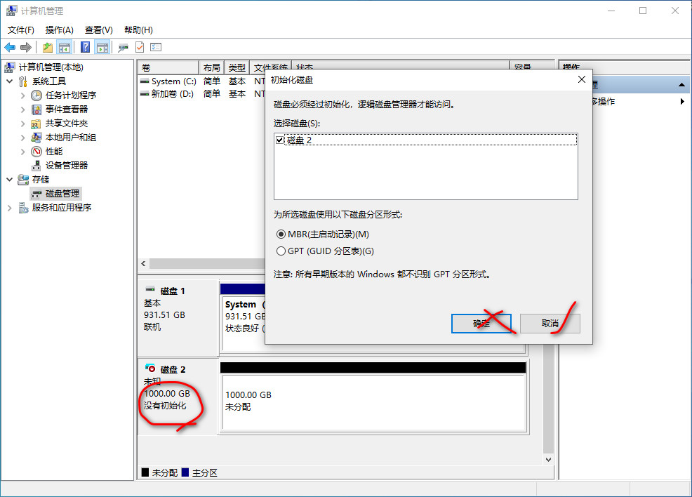 看! 用磁盘管理/设备管理器查看状态,勿初始化!