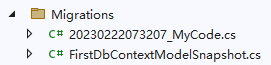 Add-Migration MyCodeFirst运行成功后会出现以下文件:
