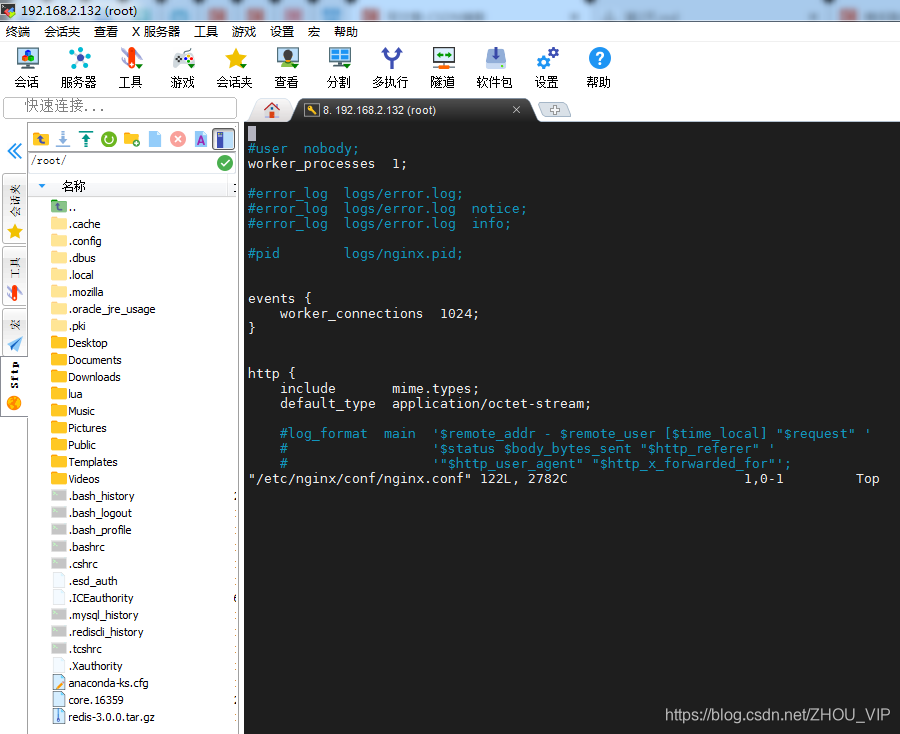 root@localhost:/# vi /etc/nginx/conf/nginx.conf