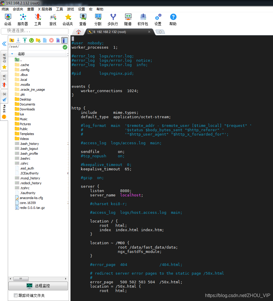 Nginx在这里主要提供对FastDFS图片访问的支持,Docker容器中已经集成了Nginx,我们需要修改nginx的配置,进入storage的容器内部,修改nginx.conf
