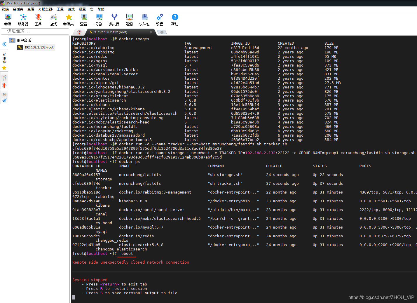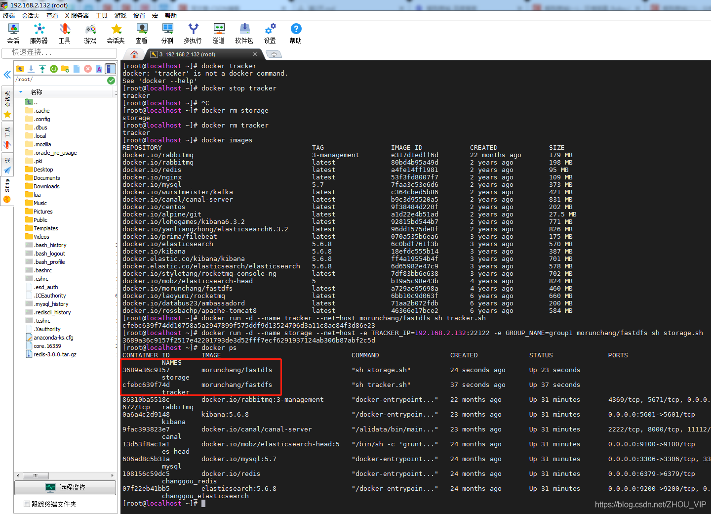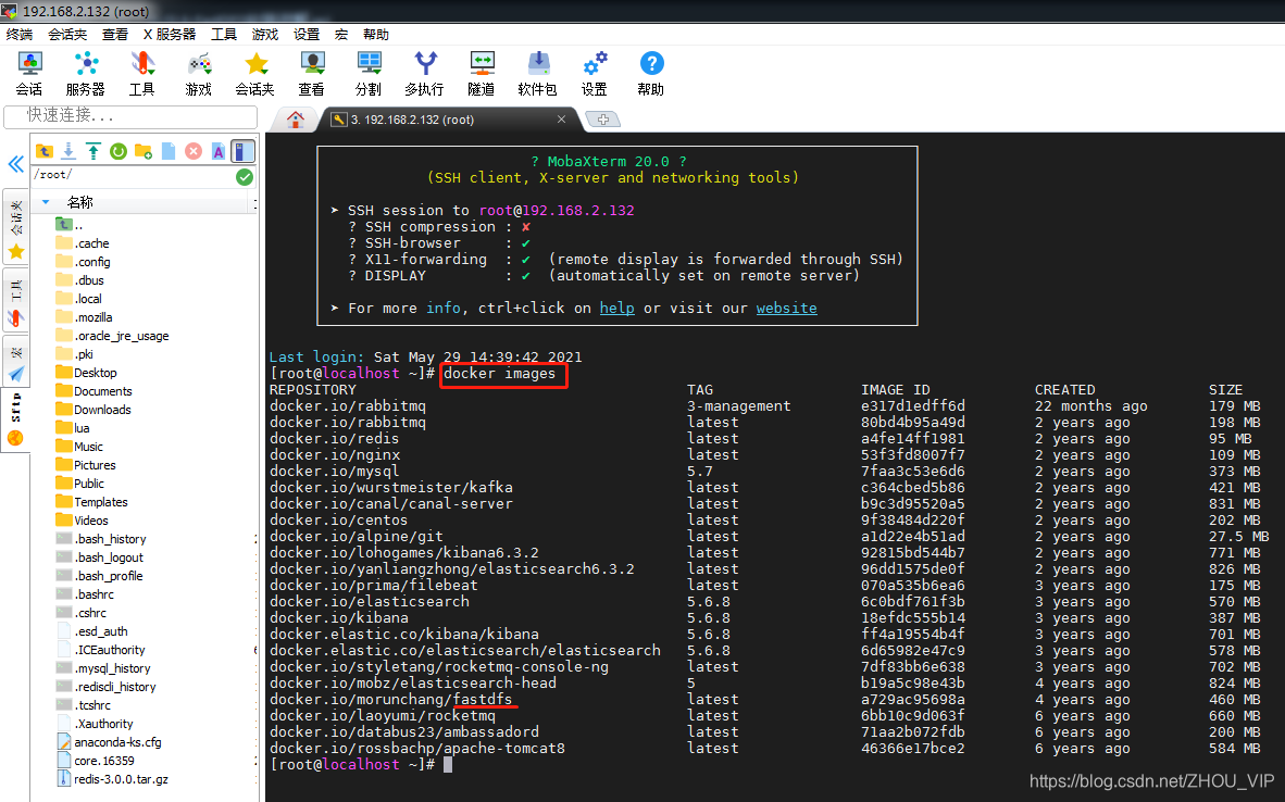 我们使用Docker搭建FastDFS的开发环境,虚拟机中已经下载了fastdfs的镜像,可以通过docker images查看,如下图:
