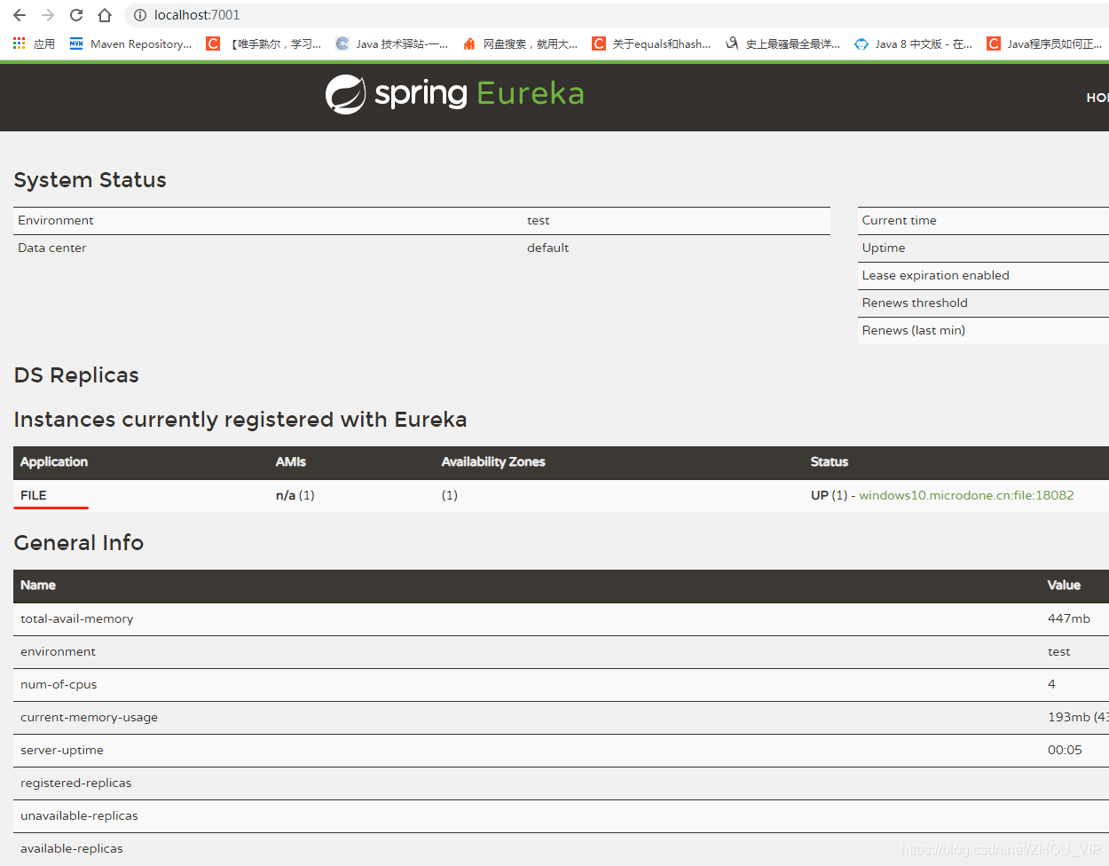 先启动EurekaApplication,再启动FileApplication,浏览器访问:http://localhost:7001/,结果ok,已经注册进去了