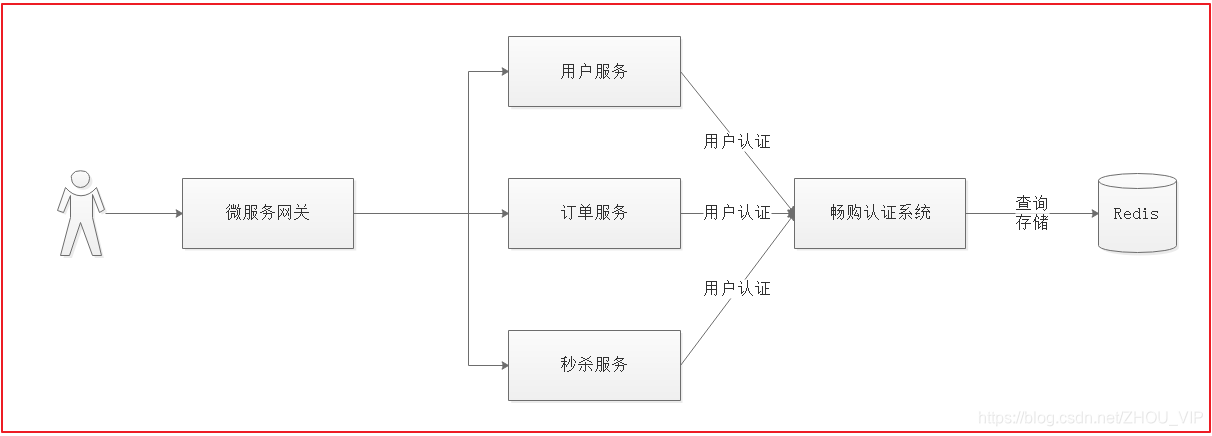 问订单微服务,秒杀抢购商品需要访问秒杀微服务。每个服务都需要认证用户的身份,身份认证成