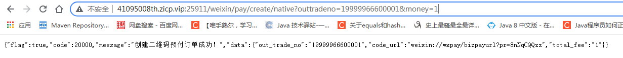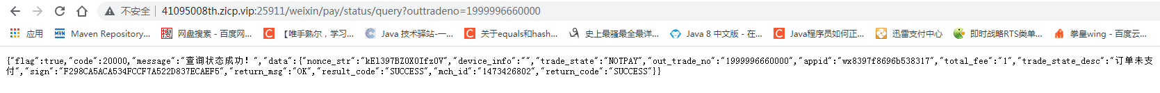 XML方式给予响应。程序根据返回的结果(其中包括支付URL)生成二维码或判断订单状态。