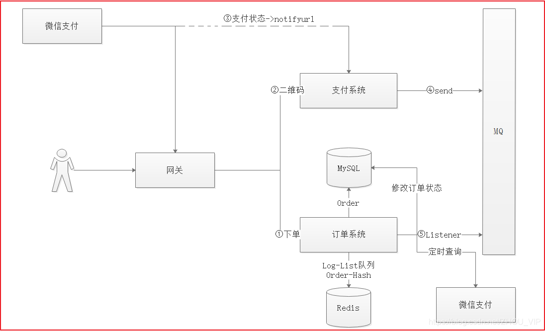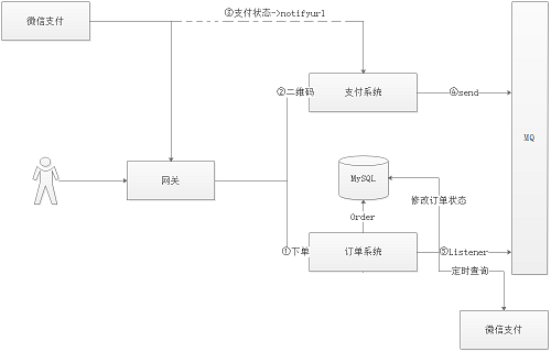 维码返回给用户,然后订单系统就开始监听MQ。