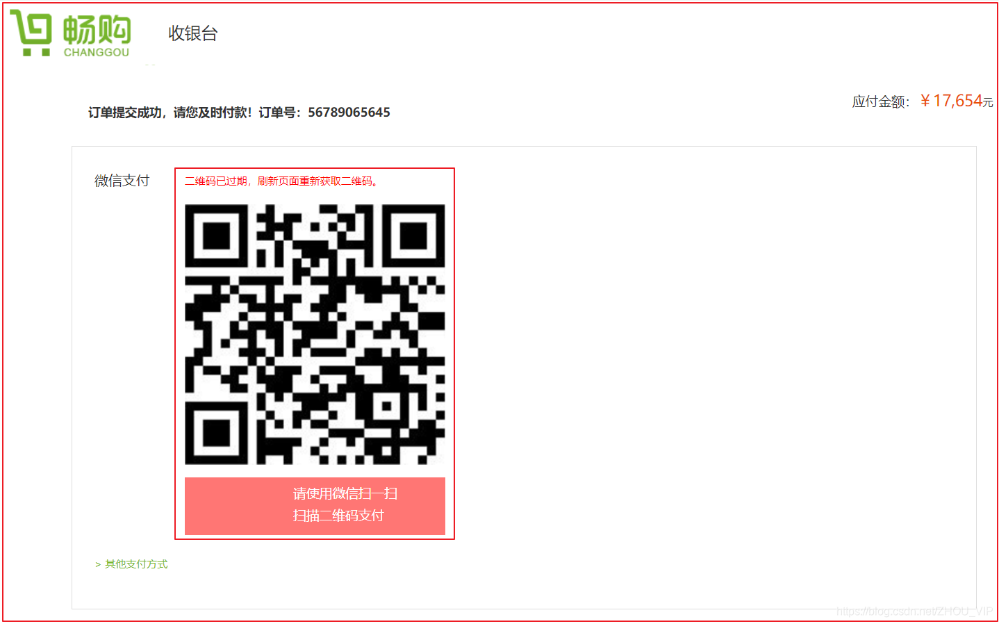 2.用户下单后,进入支付页面,支付页面调用支付系统,从微信支付获取二维码数据,并在页面生成支付二维码。