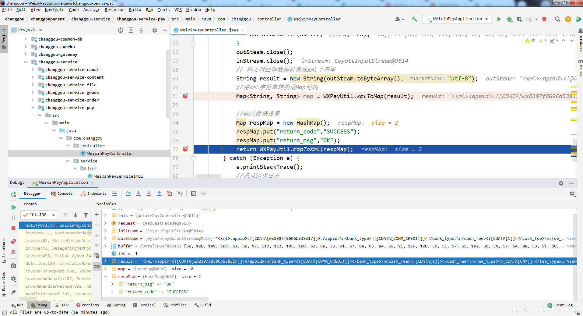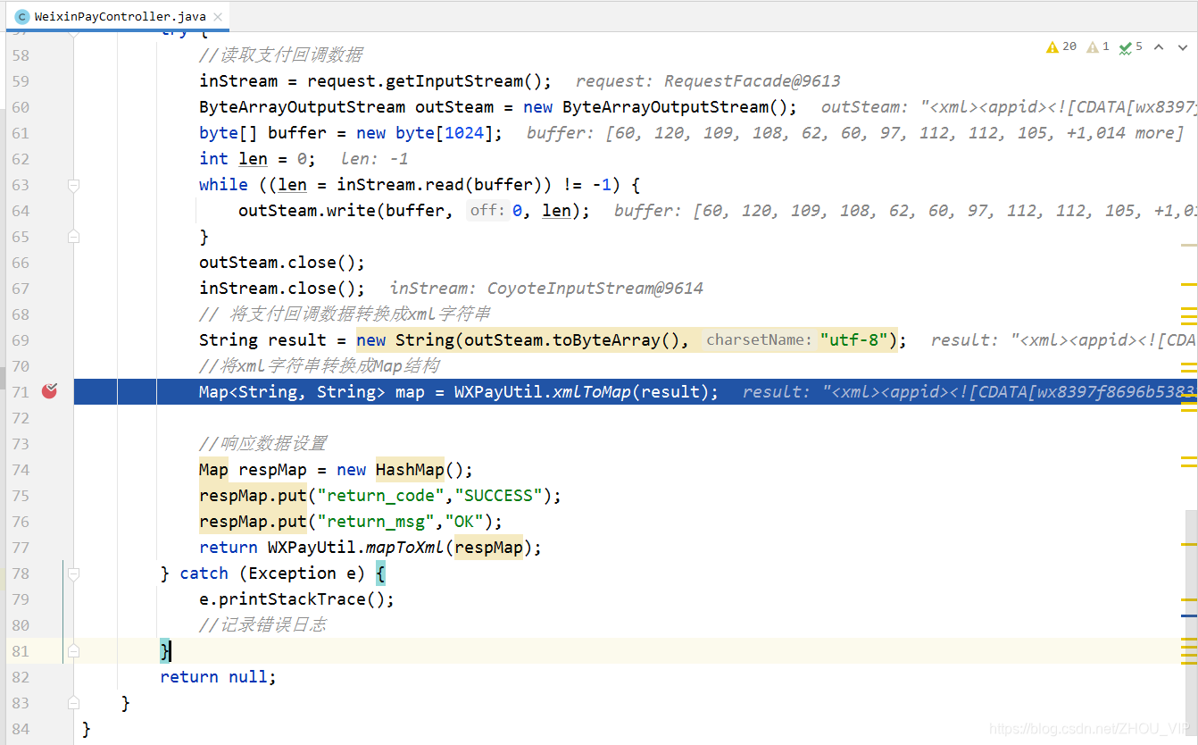 3.用户扫码支付后,微信支付服务器会通调用前预留的回调地址,并携带支付状态信息。