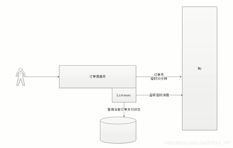 用户扫码支付后,支付系统将支付状态存进MQ中。订单系统检测到用户已经付钱了,就将订单设