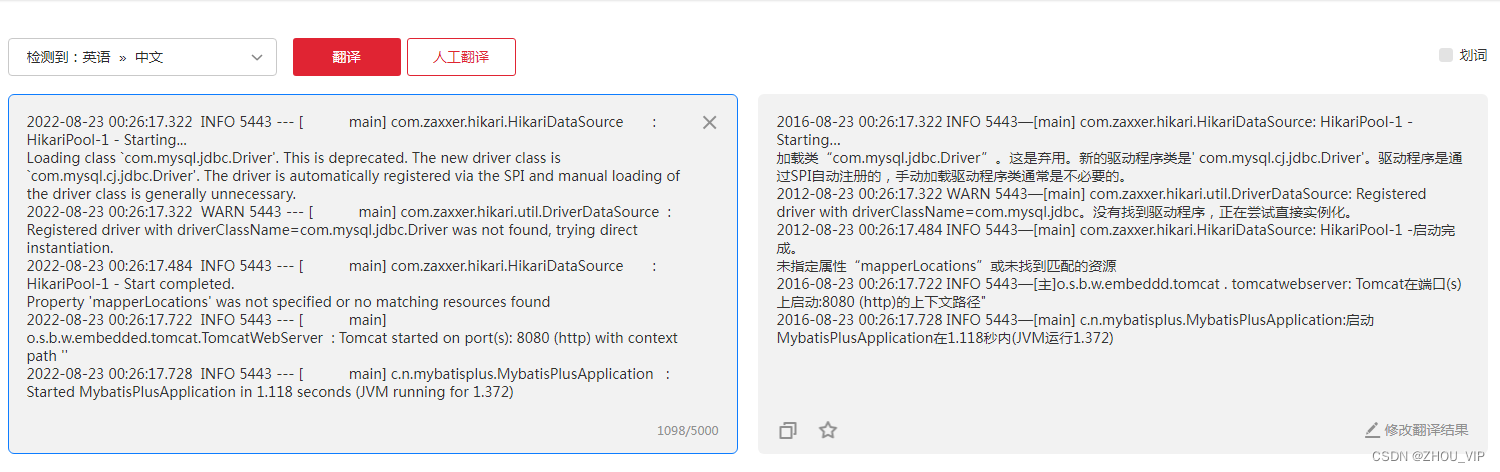 2022-08-23 00:26:16.782 INFO 5443 --- [ main] c.n.mybatisplus.MybatisPlusApplication : Starting MybatisPlusApplication using Java 1.8.0_345 on ZHOUdeiMac.lan with PID 5443 (/Users/zhou/IdeaProjects/mybatis-plus/target/classes started by zhou in /Users/zhou/IdeaProjects/mybatis-plus)
