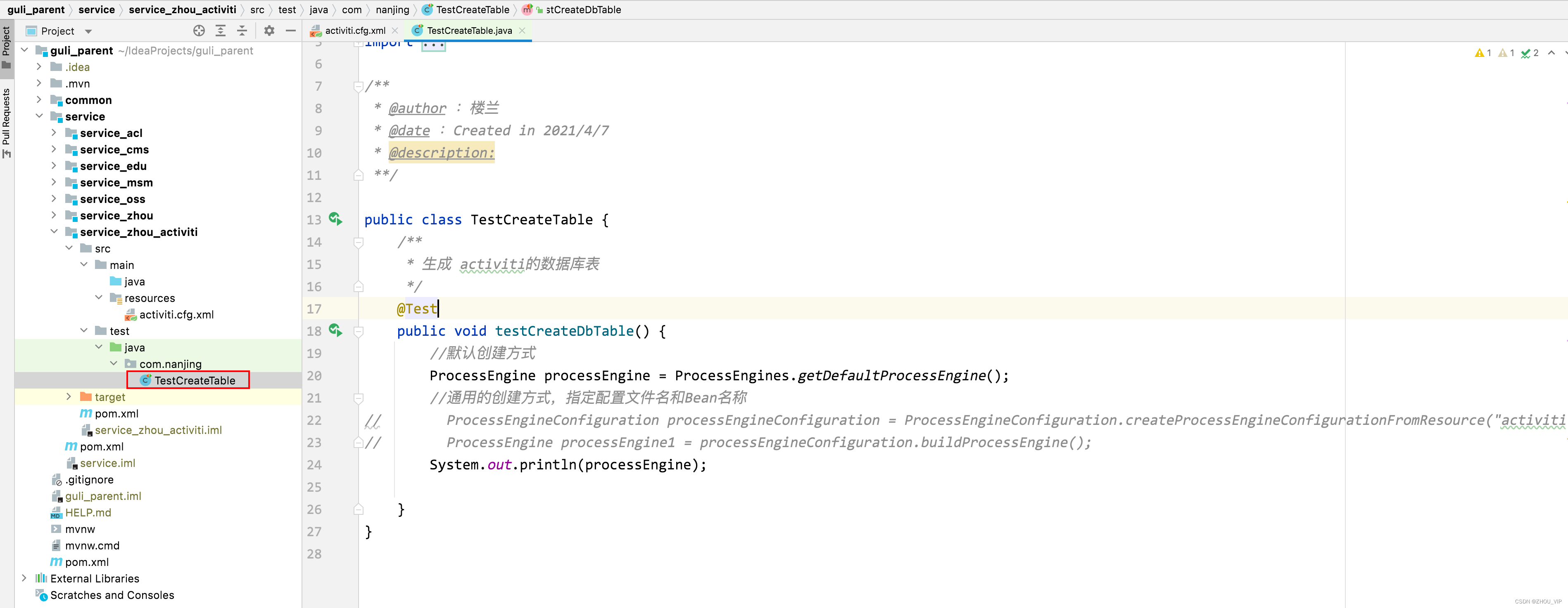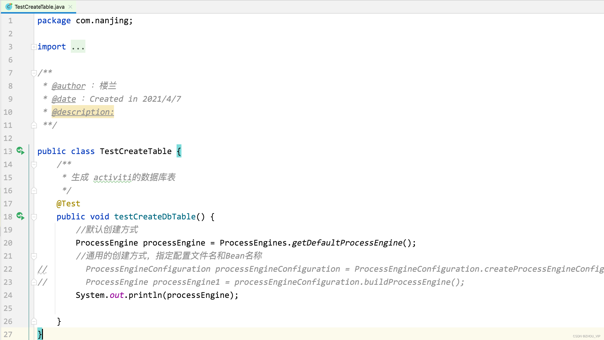 创建一个测试类,调用activiti的工具类,直接生成activiti需要的数据库表。