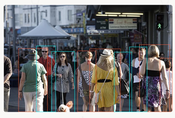 2.标框标注:机器视觉中的标框标注,很容易理解,就是框选要检测的对象。如人脸识别,首先要先把人脸的位置确定下来。行人识别,如下图。