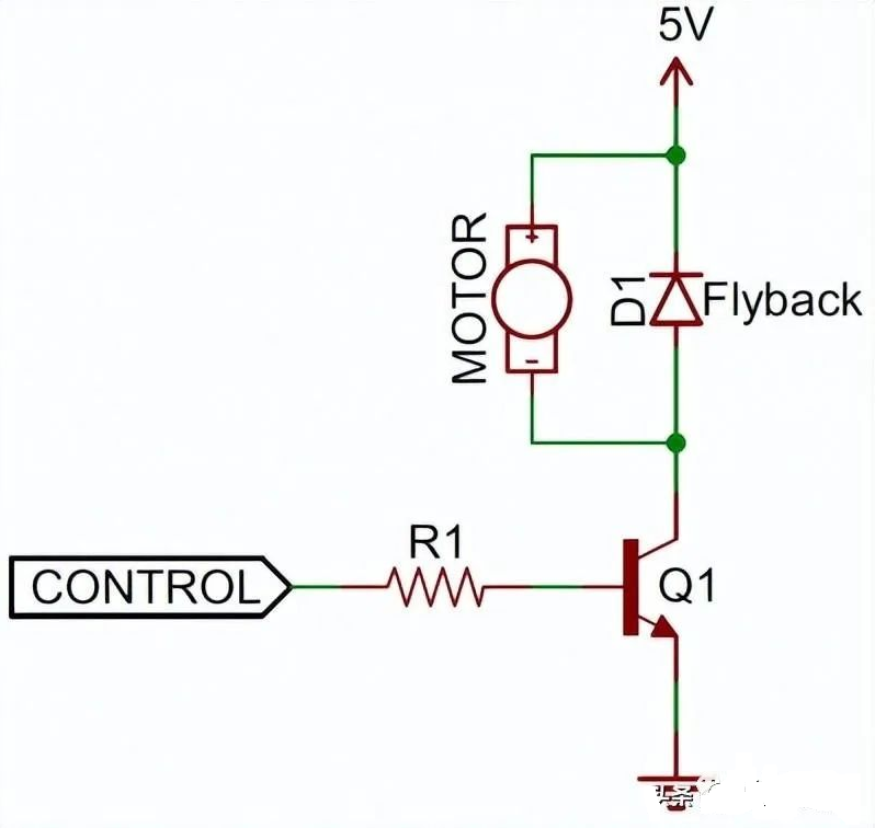 当通过电感的电流突然变化时,会产生一个电压尖峰,可能是一个非常大的负尖峰,放置在感性负载上的反激二极管将为负电压信号提供安全的放电路径,实际上循环通过电感和二极管,直到它最终消失。