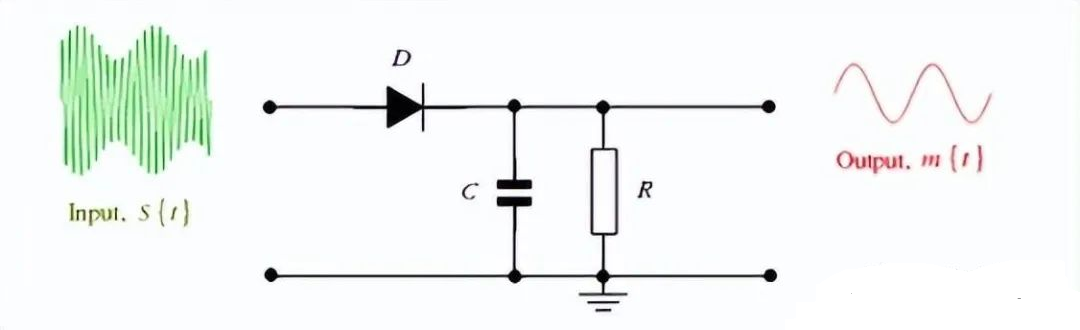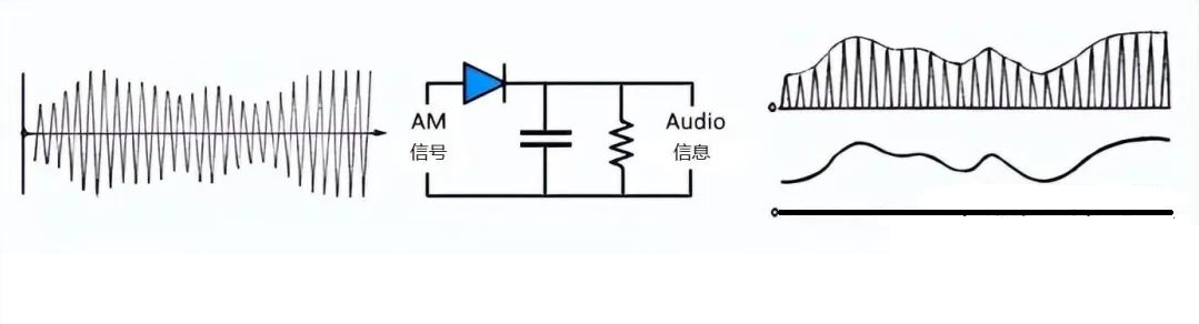 晶体二极管对幅度调制信号进行整流,从而产生具有所需平均幅度的信号,一个简单的过滤器用于检索平均值,然后将其放入产生声音的音频转换器中。