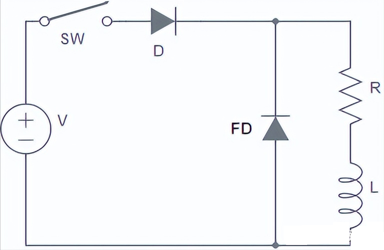 当电感电路关闭时,续流二极管为电感衰减电流的流动提供短路路径,从而消耗电感中存储的能量。