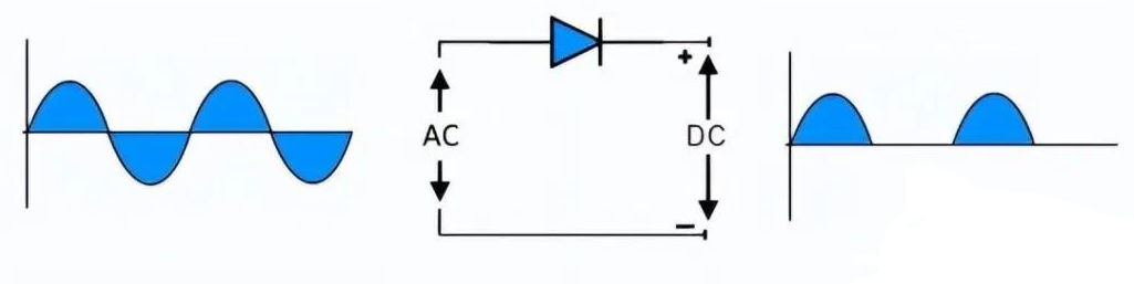 仅将交流信号的半波转换为直流信号的过程称为半波整流电路,这种类型的整流是通过只使用一个二极管来实现的,只留下一半信号。