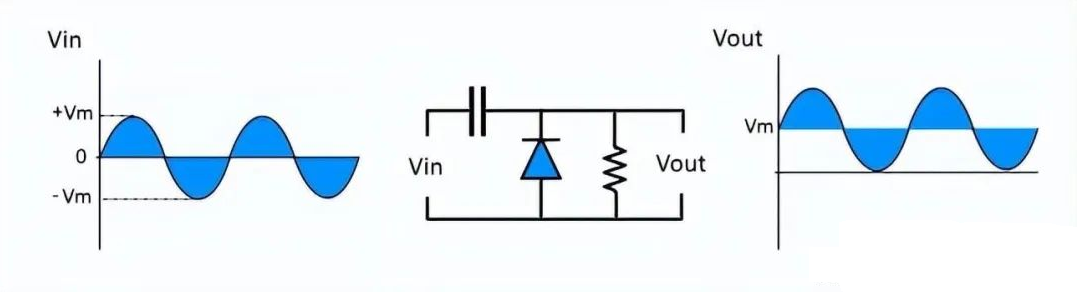 信号的峰峰值保持不变,钳位器由一个带电容的二极管组成。