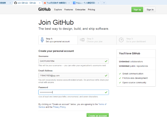 首先打开网页,填写注册名字,邮箱,以及登录密码。