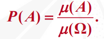 - 几何概率的定义:对于随机试验E,以μ(A)表示事件A的几何度量,Ω为样本空间,若0<μ(Ω)<+∞,则对于任一事件A,其概率为