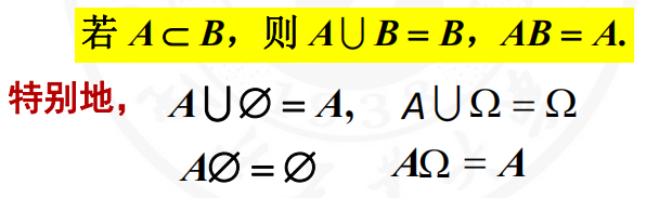 - 若事件A发生,必然导致B发生,则称事件B包含事件A