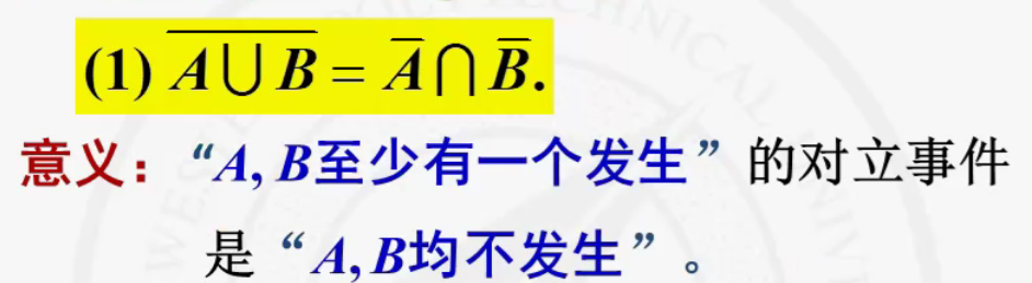 - 若事件A的发生必然导致事件B不发生,B发生也必然导致A不发生