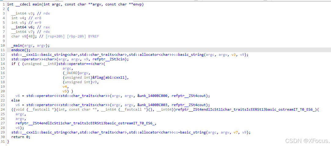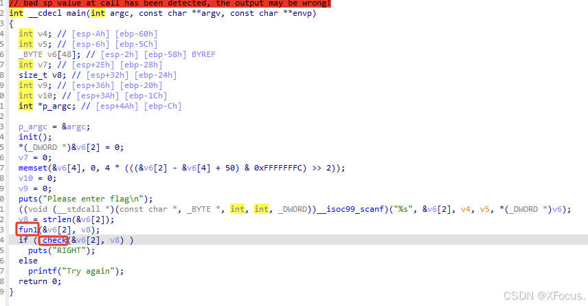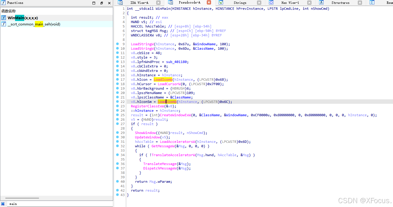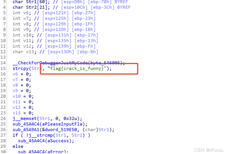 找到函数(主函数没反编译出来,看内存也可以看懂)