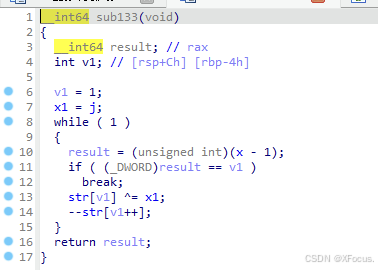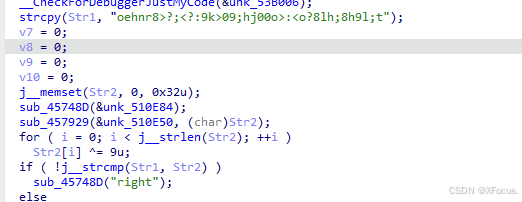 给出两个值v1=1;x1=j跟进一下看到j=8。同时将每一位-1之后和x1进行了异或