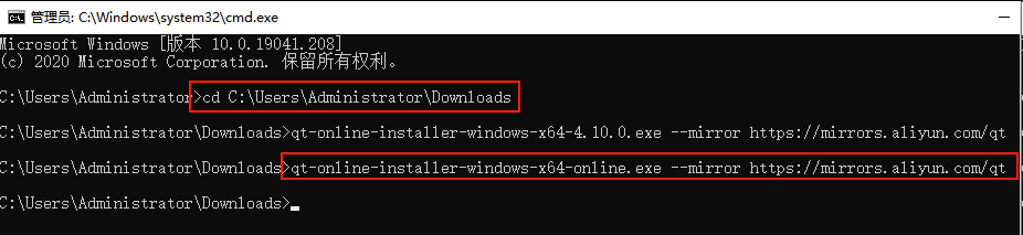 qt-online-installer-windows-x64-online.exe --mirror https://mirrors.aliyun.com/qt