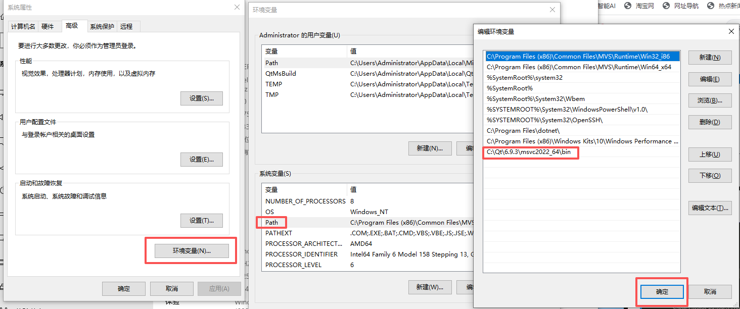 路径:C:\Qt\6.9.3\msvc2019_64\bin 选择qmake 右下角打开