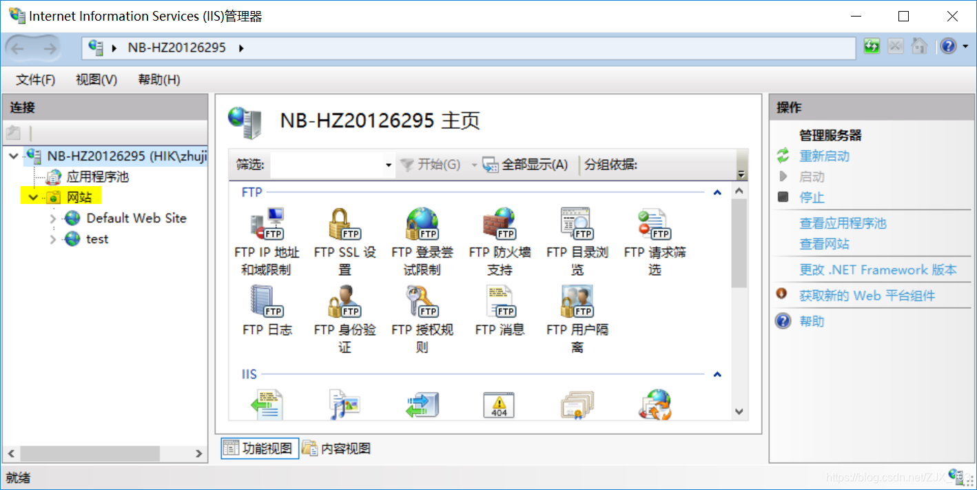 第六步:打开“Internet Information Services(IIS)管理器”