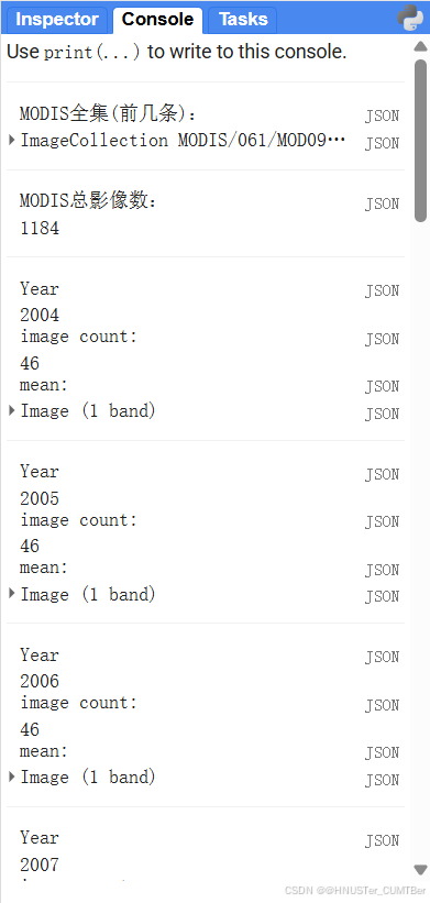 在 GEE 控制台输出关键信息,方便用户验证数据加载和处理结果是否正常: