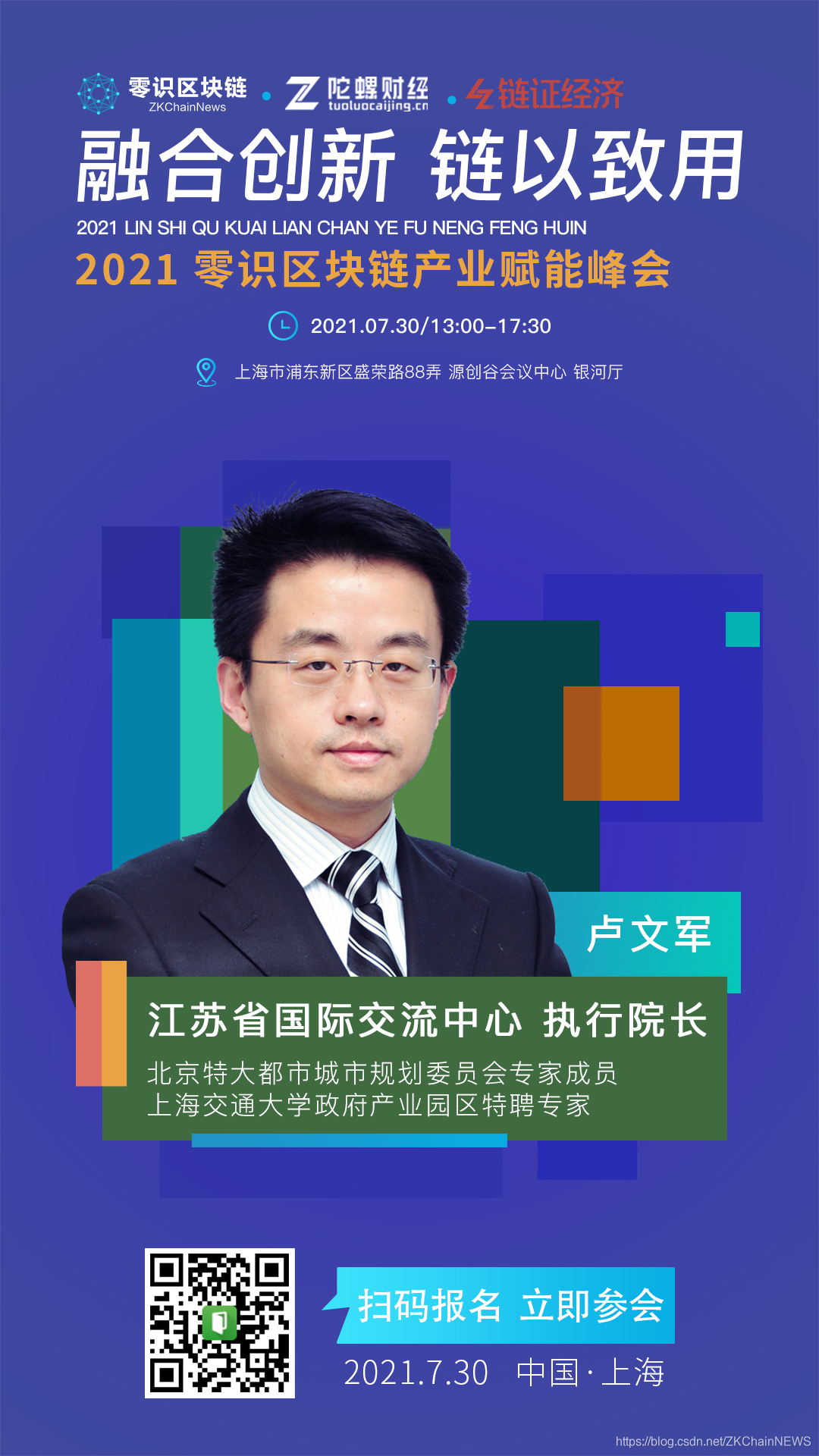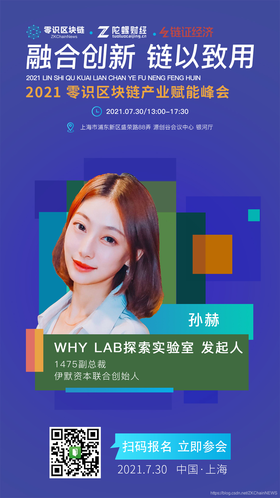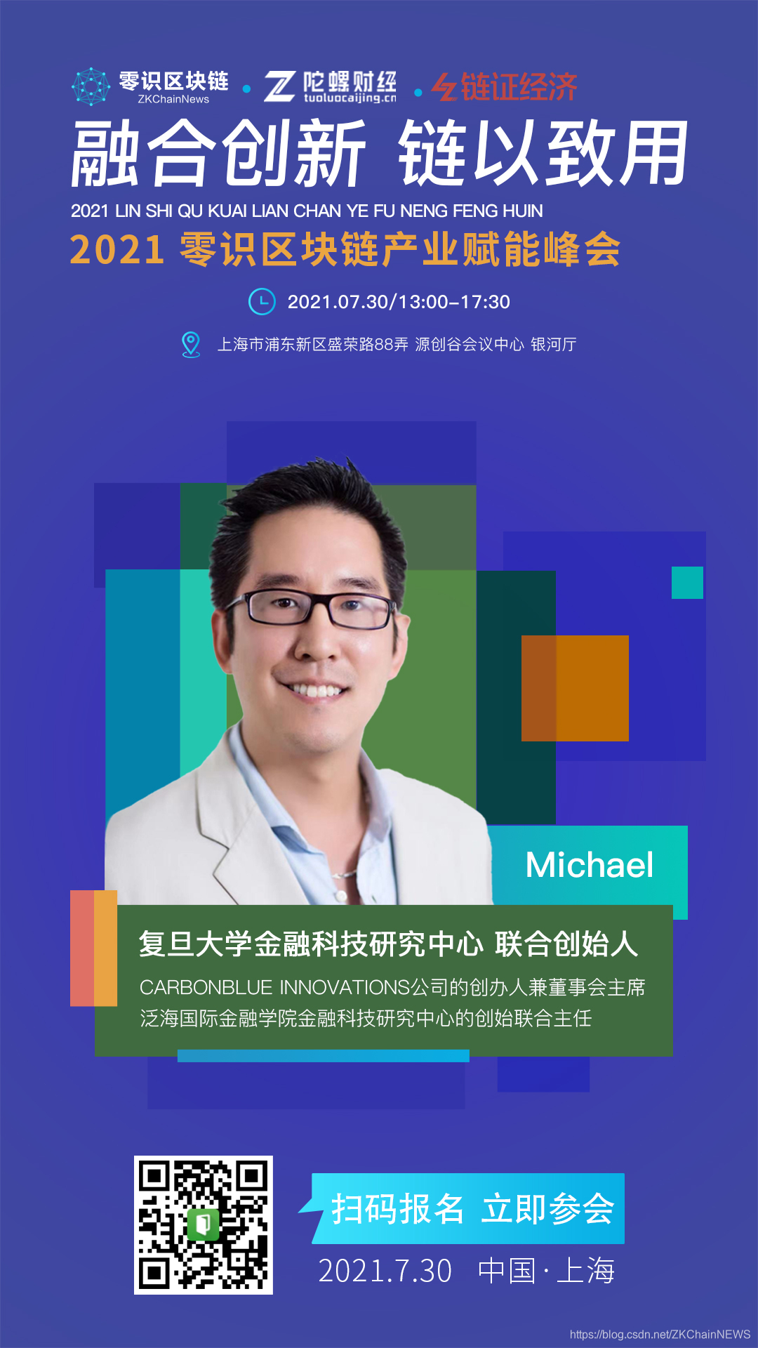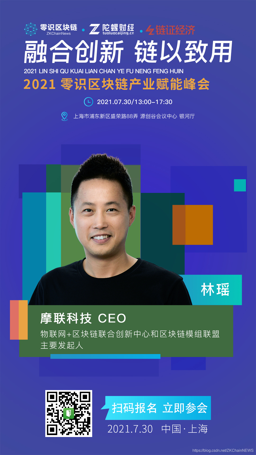 2021年7月30日,上海浦东将举办“融合创新 链以致用”2021零识区块链产业赋能峰会,汇集区块链研究专家、企业代表等,探讨产业区块链的前景与趋势。嘉宾包括上海区块链技术协会副秘书长施维捷、链极科技董事长庞引明、微众银行区块链战略合作负责人鲍大伟等业界知名人士。
