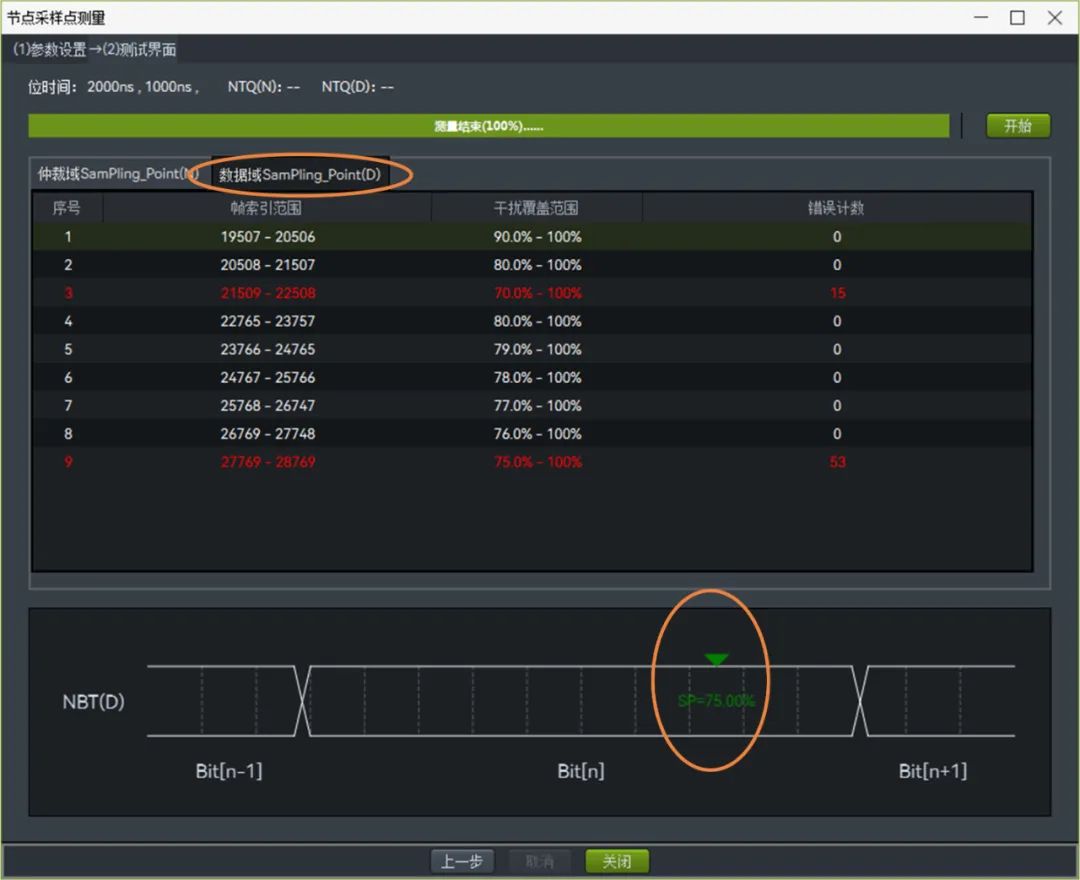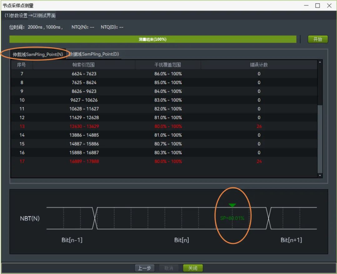 注:采样点结果统计方法请参考ZPS-CANFD用户手册相关描述。