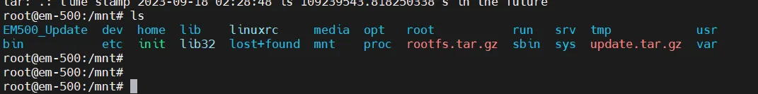 打包完成后会在系统的根目录出现一个rootfs.tar.gz的压缩包,这个压缩包就是这台EM-500当前使用的文件系统,该文件系统包含配置好的环境,应用等文件。