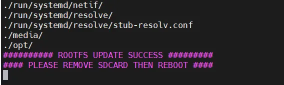 用户制作文件系统时,需要一张TF卡并插入到已经调试好应用的文件系统,然后官网下载update.tar.gz到该EM-500,注意一点是TF卡将会被格式化,所以要备份好数据后再用于制作,用户只需打包当前文件系统为rootfs.tar.gz,然后将文件系统部署到TF卡里面即可,以下展示整个制作的过程。