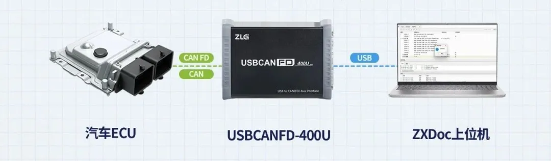 ECU刷写是现代汽车电子开发中的核心环节,基于UDS诊断协议实现控制器软件的更新与维护。本文将以USBCANFD-400U接口卡为例,详细介绍CAN FD总线环境下ECU刷写的标准流程与实操要点。