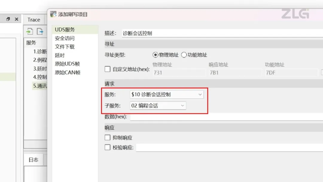 发送10 03指令,检查ECU刷写前提条件(如车辆状态、电压范围)。满足条件后,执行: