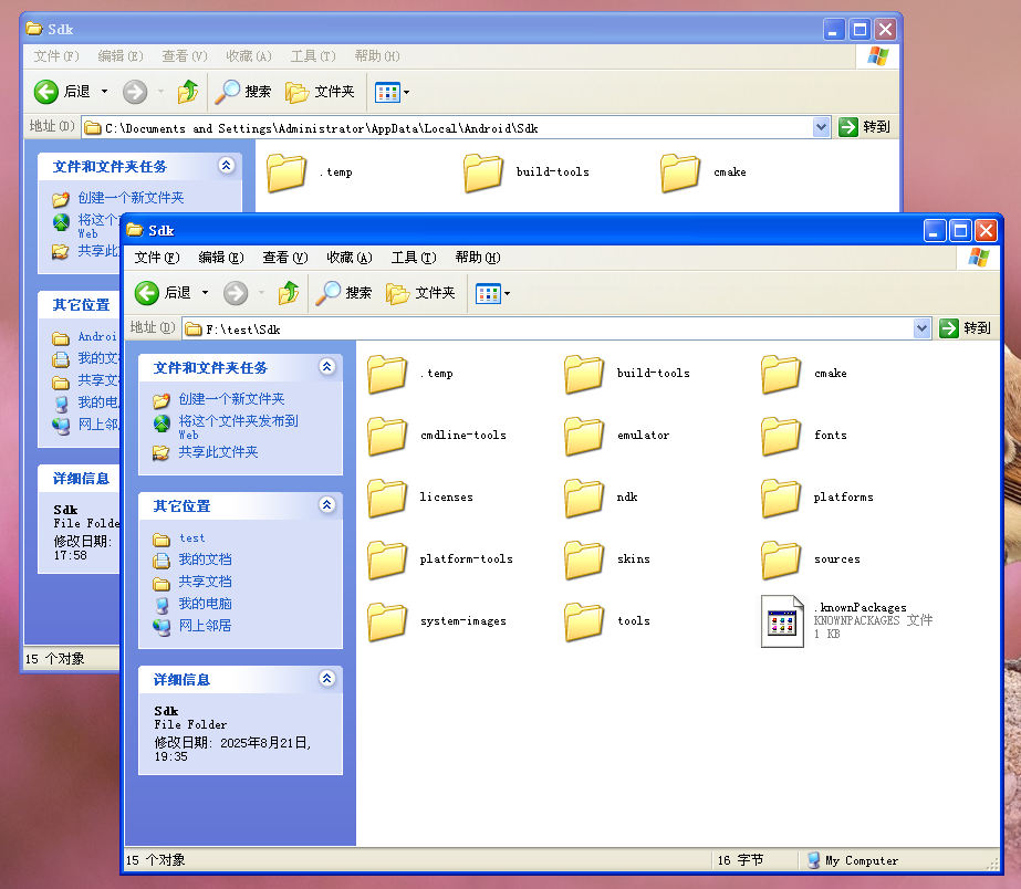 注意路径里面不能有空格,默认的路径C:\Documents and Settings\Administrator\AppData\Local\Android\Sdk是有空格的,要把这个文件夹手动复制到没有空格的地方(比如F:\test),然后把SDK路径改成F:\test\Sdk,NDK路径改成F:\test\Sdk\ndk\21.0.6113669。