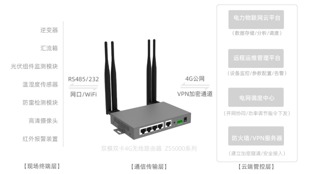 光伏电站(集中式/分布式)普遍存在分布地域广、环境恶劣(高温、高湿、沙尘)、有线布线成本高等问题,核心运维需求是实现光伏组件、逆变器、汇流箱等设备的数据采集、远程监控与故障预警。