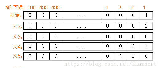 for(i=1;i<500;i++){ //进位