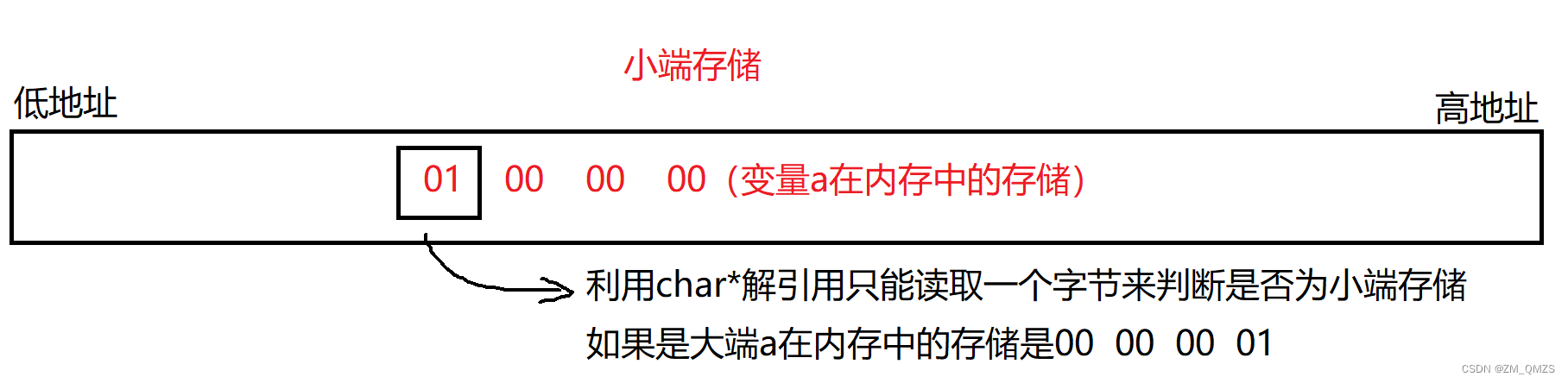 if (*(char*)&a == 1)//取出a的地址转换成char*解引用第一个字节判断是0还是1