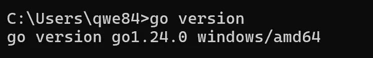 使用 cmd 来输入 go version 来查看 go 的环境,我这里安装是的 go 的 1.24.0 版本,确认是可以使用的。