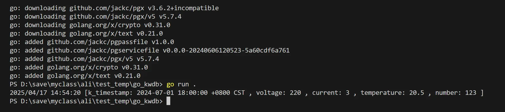 Golang 这里使用 pgx 驱动连接 KWDB 来支持对 KWDB 的 CRUD 操作。